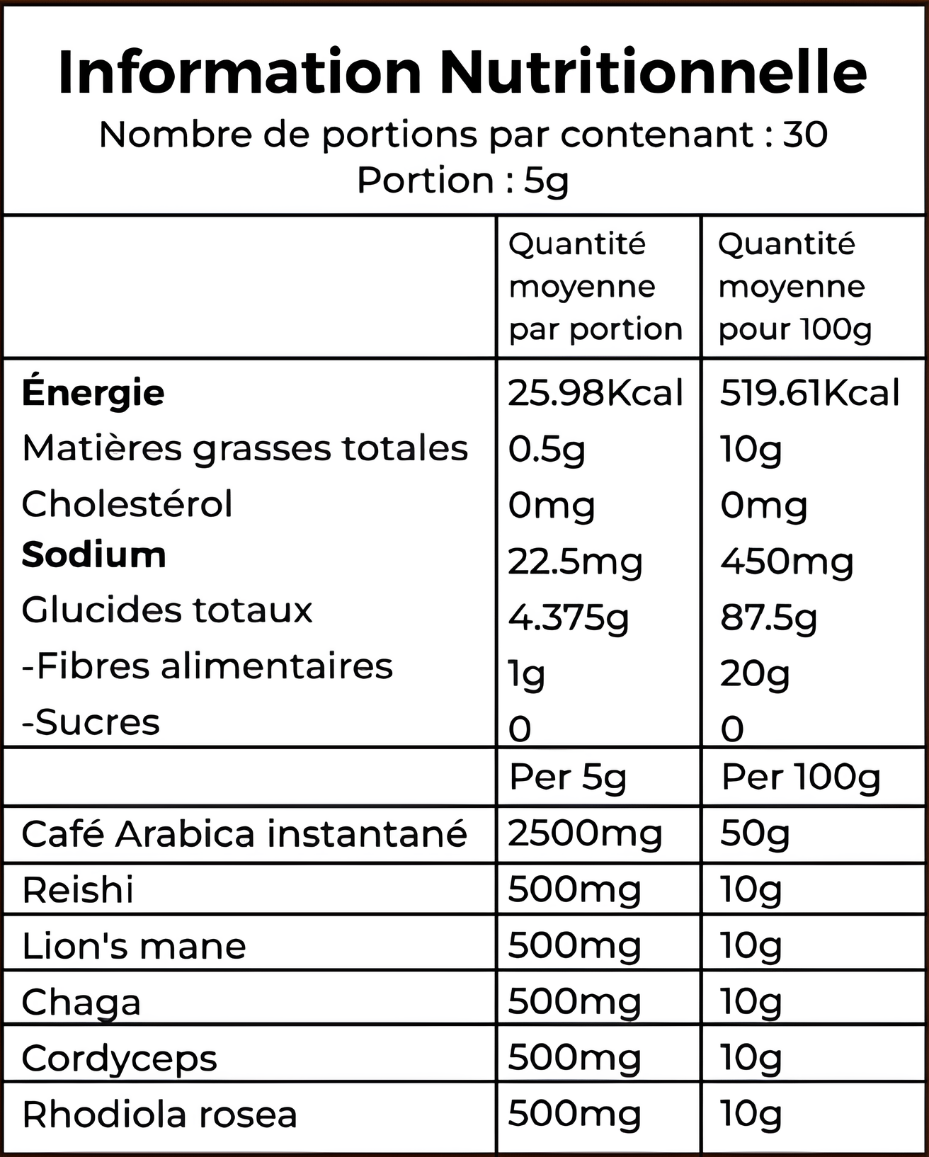 Chaque sachet de 150g contient 50% d'adaptogènes (75g).